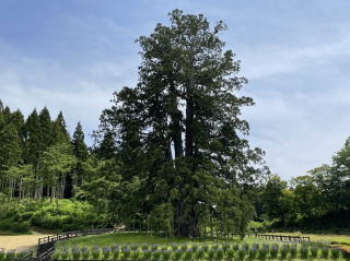 二本松市の杉沢にあるこの大杉は単木としては日本国内でも最大級と言われております。推定樹齢は約1000年、樹高は約45m、昭和18年に国の天然記念物に指定されています。